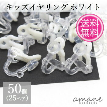 【まとめ買いがお得!200円OFFクーポン発行中!】イヤリングパーツ 50個 キッズイヤリング ホワイト 子供用 イヤリング カン付き アクセサリーパーツ ハンドメイドパーツ
