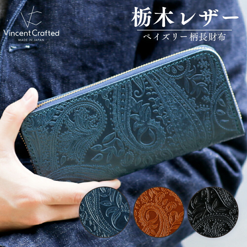 栃木レザー 長財布 メンズ レディース 日本製 本革 財布 ペイズリー 柄 VINCENT CRAFTED ヴィンセントクラフテッド ラウンドファスナー ロングウォレット DIEGO クリスマス 誕生日 プレゼント向け